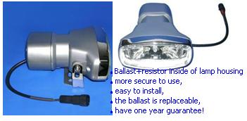 Lx350-2 Driving Pattern Light with inlaid Ballast HID Xenon Lamp, diamond cut reflecting cast alloy. ● Ballast+resistor inside of lamp housing, ● more secure to use, ● easy to install, ● the ballast is replaceable, ● have one year guarantee!